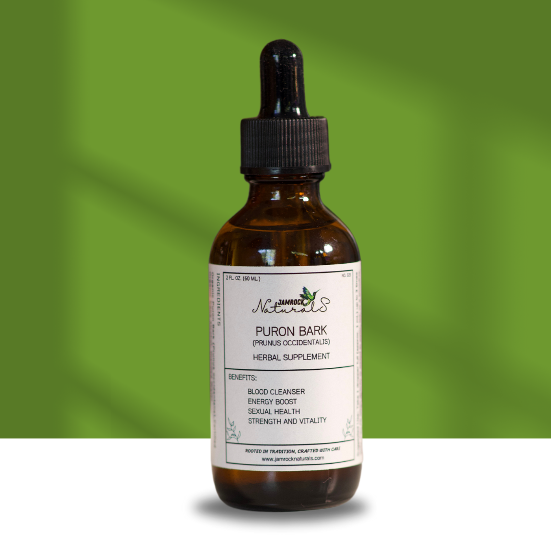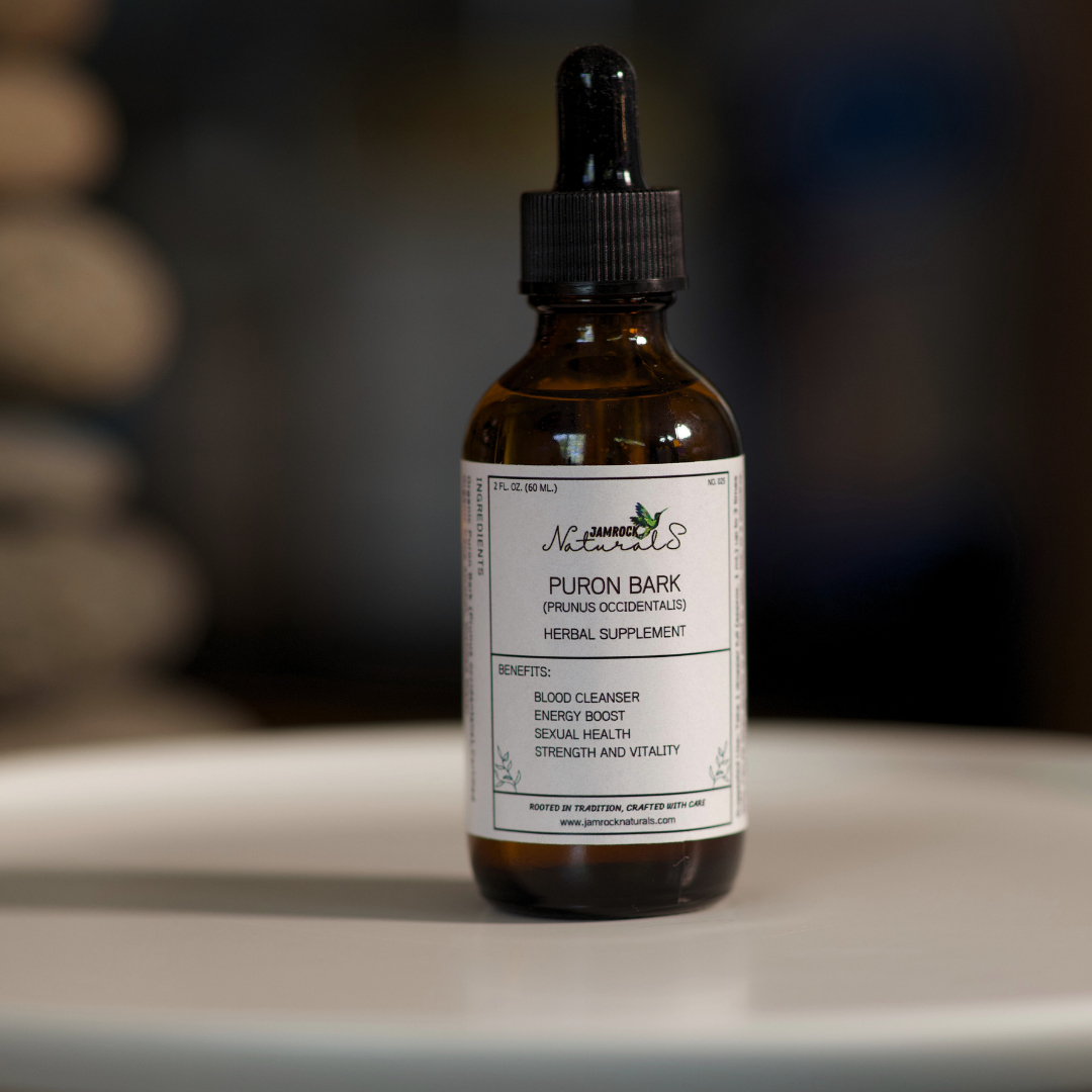 Experience the revitalizing benefits of Puron Bark Tincture, derived from Prunus occidentalis, a cherished Jamaican herb celebrated for its energizing and restorative properties. Known as a key ingredient in traditional Jamaican roots tonics, this tincture supports overall vitality, cleanses the blood, and promotes a sense of well-being. Rooted in herbal folklore, Puron Bark is also believed to enhance sexual health and performance.